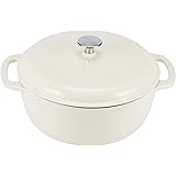 $49.96 (as of November 12, 2025 12:17 GMT -05:00 - More infoProduct prices and availability are accurate as of the date/time indicated and are subject to change. Any price and availability information displayed on [relevant Amazon Site(s), as applicable] at the time of purchase will apply to the purchase of this product.)Overmont Enameled Cast Iron Dutch Oven - 5.5QT Pot with Lid Cookbook & Cotton Potholders - Heavy-Duty Cookware for Braising, Stews, Roasting, Bread Baking Cream White